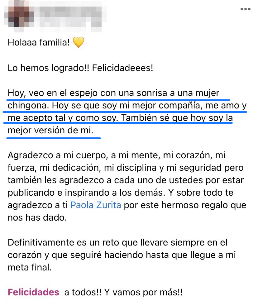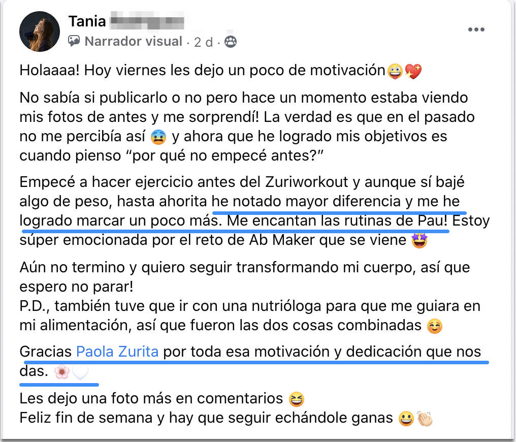 Gracias a mi comunidad de más de 1.5 millones de seguidores Zuriworkouters he podido conocer sus miedos, frustraciones y preocupaciones alrededor de tener un cuerpo que las haga sentir cómodas.